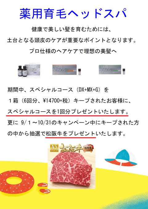 期間はまだ未定ですが 7,8月はシャンプーキャンペーンの予定です。