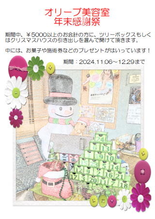 年末は予約が取れないことがありますので、ご予約はお早めにお願いいたします。