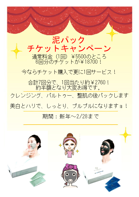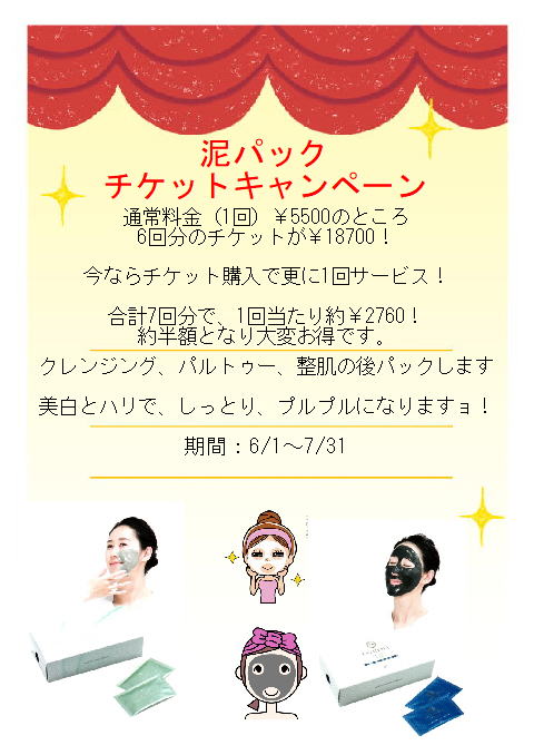 従来からある、泥パックメニューを続けていただくために、6回分のチケットにして発売します。