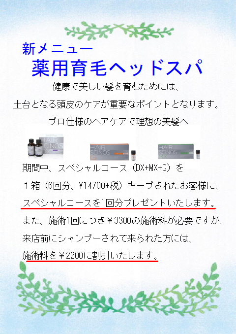 期間はまだ未定ですが 7,8月はシャンプーキャンペーンの予定です。