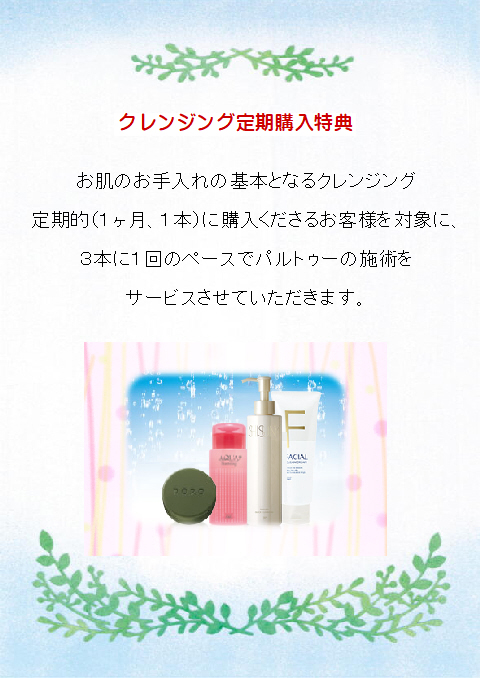 パルトゥーマッサー + 酵素ローションを¥880で提供する他にも、クレンジングに関する